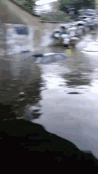 随即,街道成河、车辆“水中游”的图片、视频就刷爆了网络。
