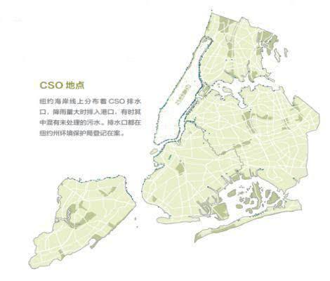 为了避免这种情况,所有超出工厂处理能力的水流都会被分流到合流制下水道溢流(简称CSO)排水口,不经处理即排放至海港。纽约港有700多个CSO排水口,其中纽约市有约450个。它们的使用率很高,因为平均每下两次雨,就有一次会产生溢流,导致约400亿加仑未经处理的废水被倾入城市水道。