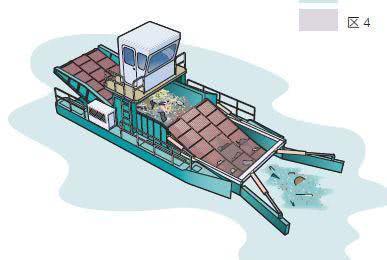 这些船有能开合的“翼”来捕捉垃圾,有能将垃圾送进储存区域的前部输送装置,还有将垃圾送进平底船的尾部输送装置。这些船每周抓取约4立方米垃圾,一个月能将一艘平底船装满两次。