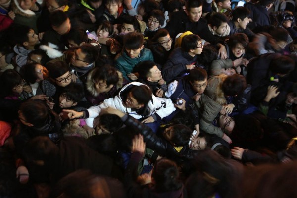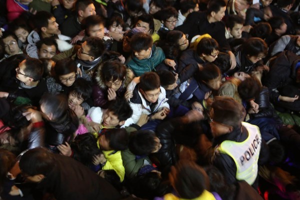 记者意识到危险性在增大想要抽身离开,但因为人群太过拥挤,使得前进和后退都变得极其困难。23:30,开始有女人尖叫和孩子的啼哭声,不安的情绪在迅速蔓延。记者也开始有不祥的预感,在此时打给朋友的电话里,他直言感觉很危险,担心发生踩踏事故。挂完电话,他看到了2米外的一个垃圾筒,后涌来的人群也正好把他涌到了附近,在努力踩上之后,又奋力攀上了近两米高的围墙。上去之后依然是拥挤不动的人潮,他只能待在墙头,在和旁边的几个年轻人一起拉上几个人后,墙头处也再无一寸容身之地。 图/文 南都记者 郭现中